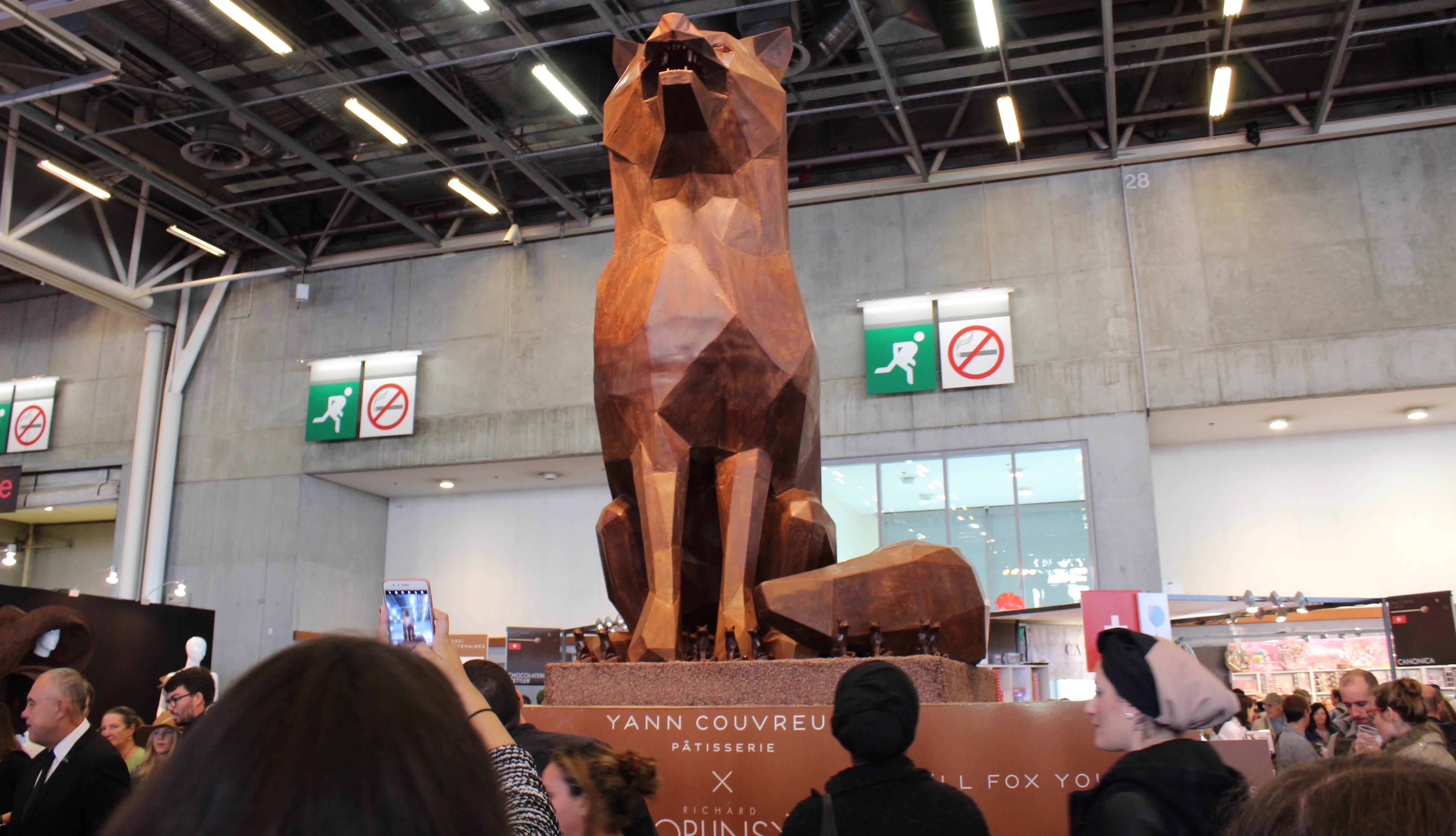 La France est le 7ème pays consommateur de chocolat en Europe, avec une consommation moyenne de 6,9kg par habitant, selon le syndicat du chocolat. Comme à chaque édition, une œuvre en chocolat, attire toujours le regard des visiteurs. Cette année, c’est un renard en chocolat de 3m de hauteur, réalisé par l’artiste Richard Orlinski en collaboration avec le pâtissier Yann Couvreur.
