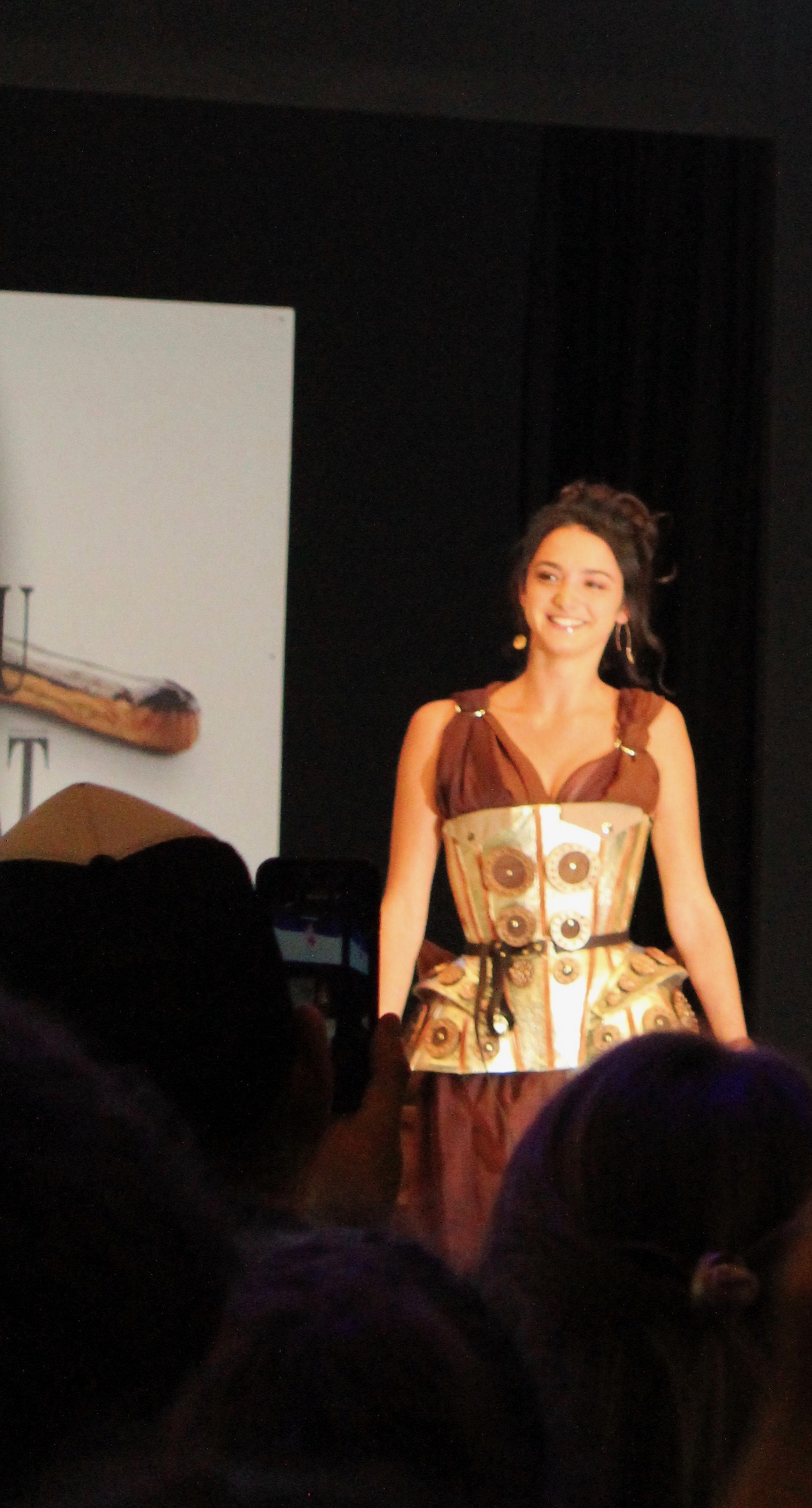 C’est l’apothéose à chaque journée. Le moment tant attendu par les visiteurs. Même s’il est possible de les voir avant le défilé, le spectacle est plus impressionnant sur la scène. Mon coup de cœur, cette année est la robe avec les éclairs au chocolat, en forme de cloche. Waouhhh, certains éclairs sont tombés pendant le passage de celle qui la portait. J’aimerais bien assister un jour à la création de telles robes et voir comment est conservé le chocolat, jusqu’au début du salon.