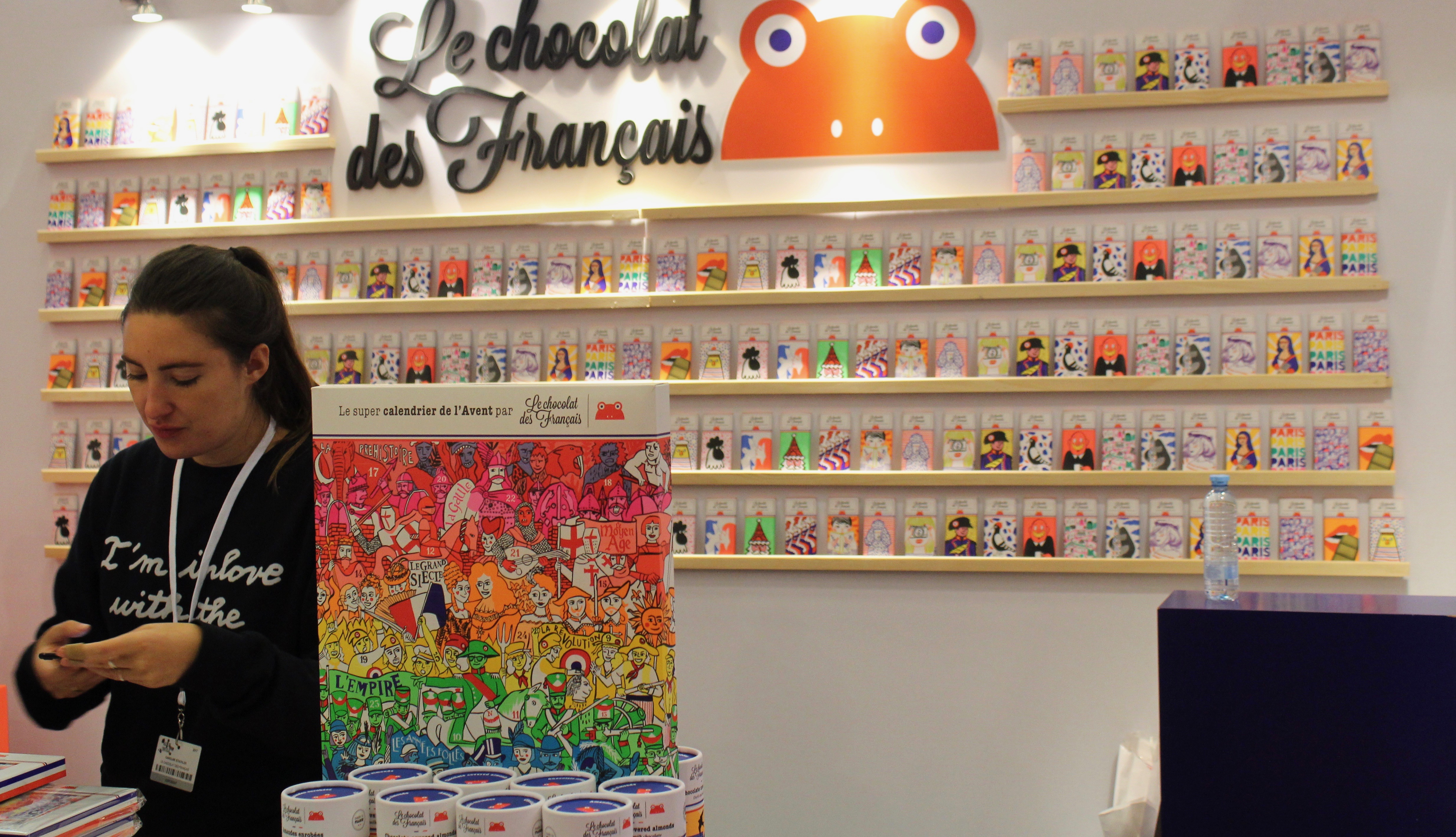 Ou encore la mosaïque en chocolat, imaginée par la marque les chocolats des français. Une marque avec des beaux packagings très colorés, qui change de ce que l’on a l’habitude de voir en magasins.