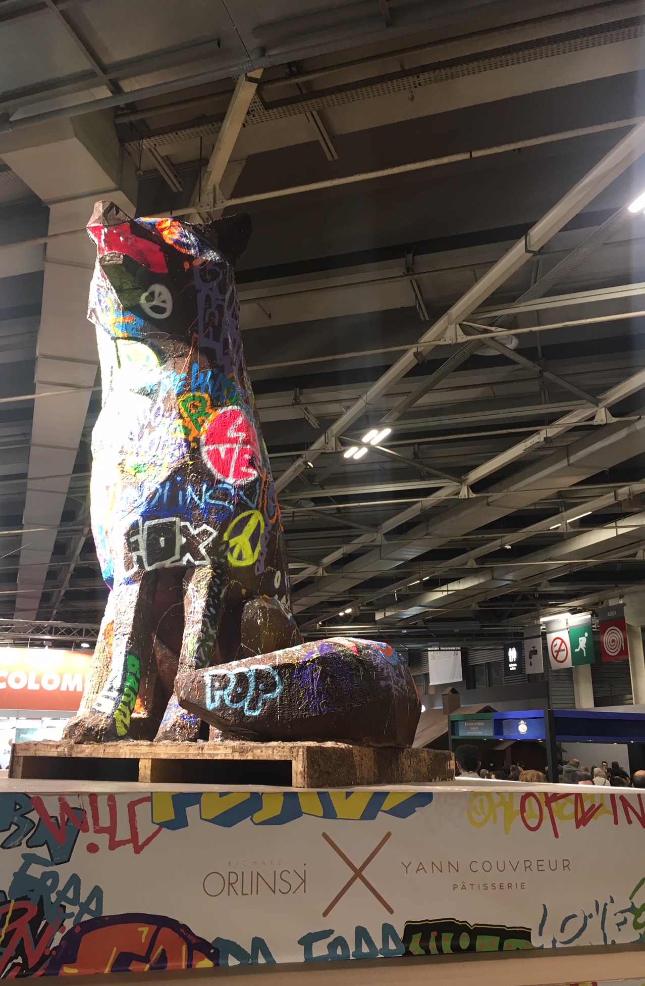 Sans oublier la religieuse géante en chocolat de Jeffrey Cagnes, le chef patissier de la pâtisserie Stohrer. Ainsi que le renard géant de Yann Couvreur, jeune chef pâtissier également, en collaboration avec Richard Orlinski.