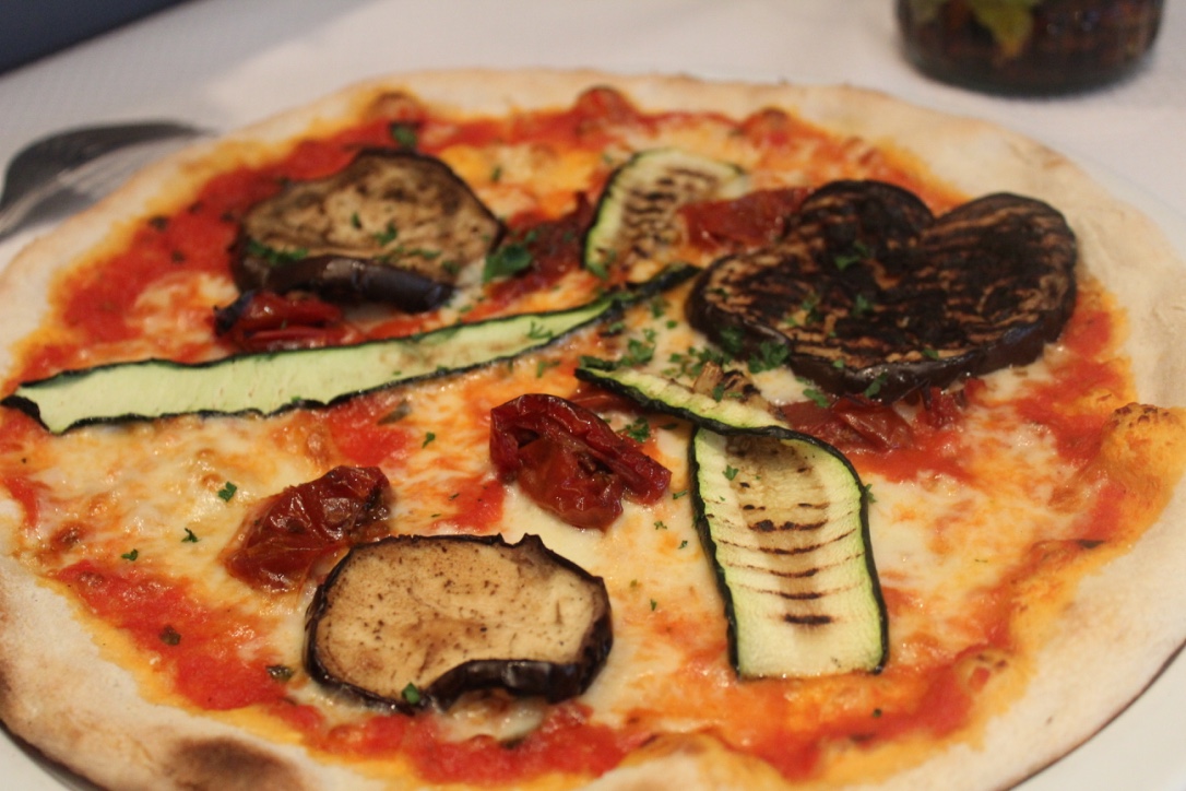 Pizza aux légumes, courgette aubergine et fromage (seul bémol, cette pizza était un peu moins garnie, comparée aux 2 autres).
