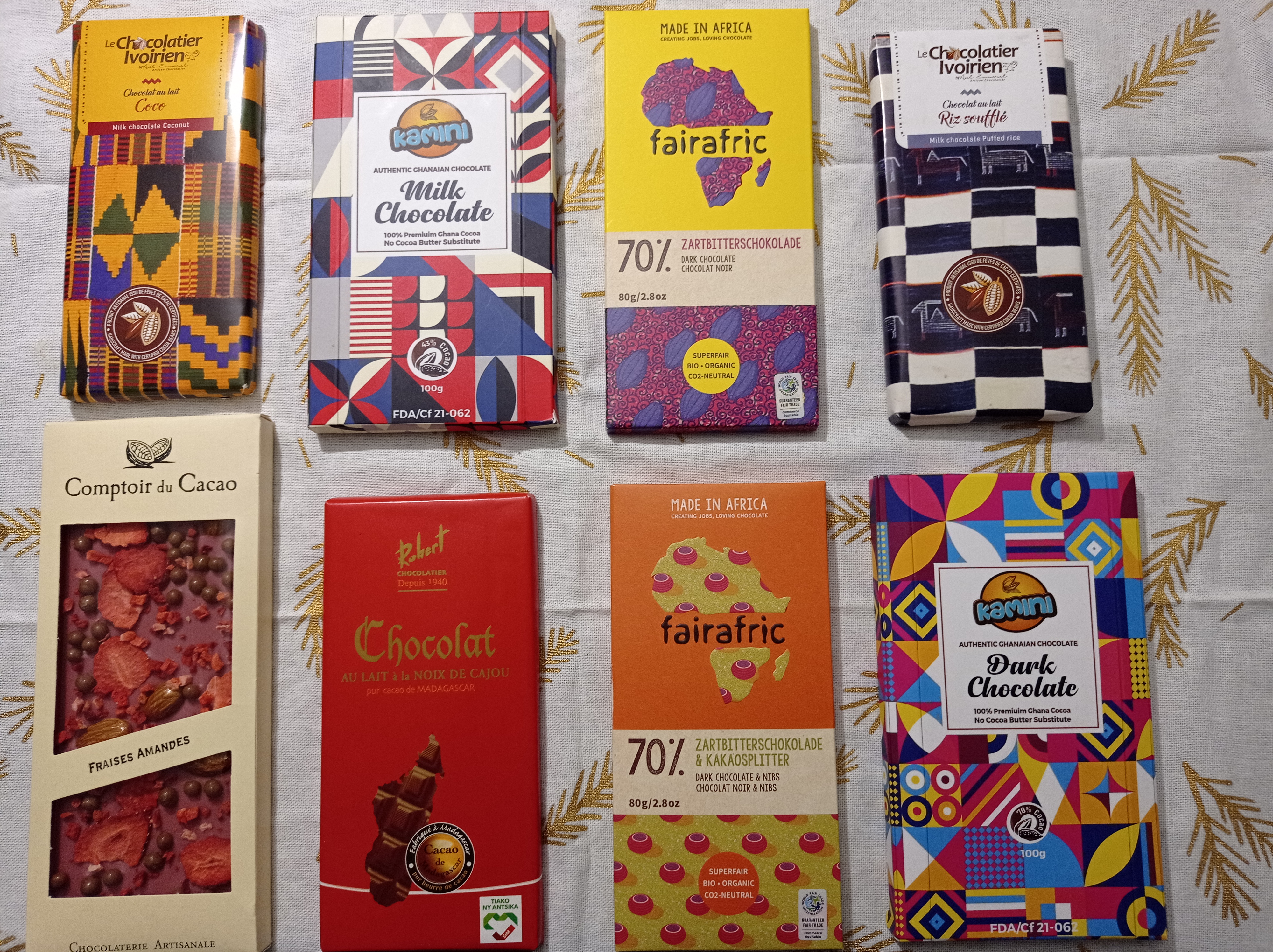 Pour terminer en beauté, j’ai acheté quelques tablettes de chocolat, en souvenir de cette journée gourmande, colorée et cacaotée.
